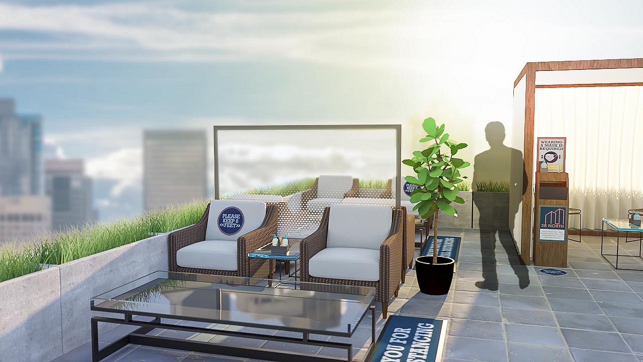 Corporate Lounge   Social distancing at work concept